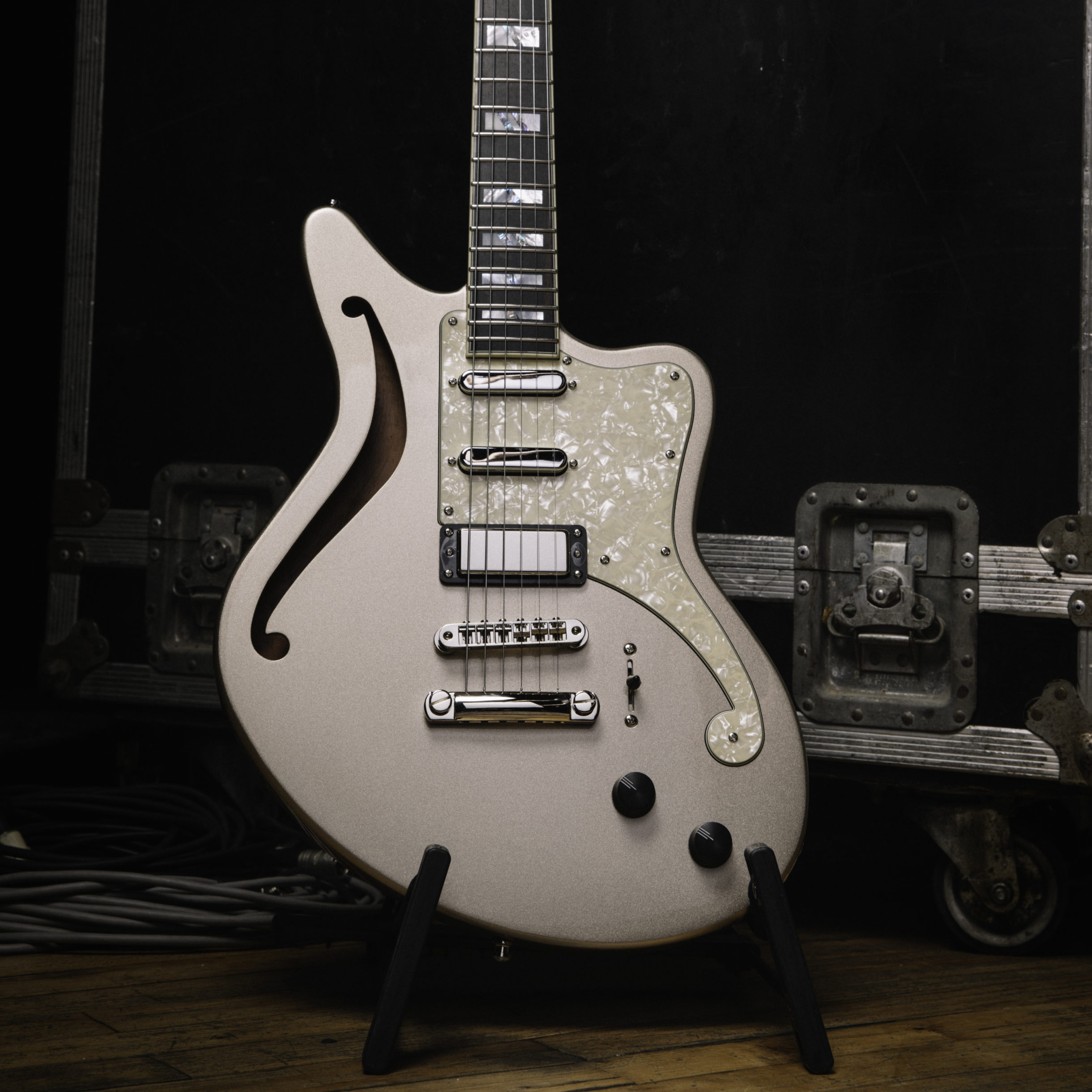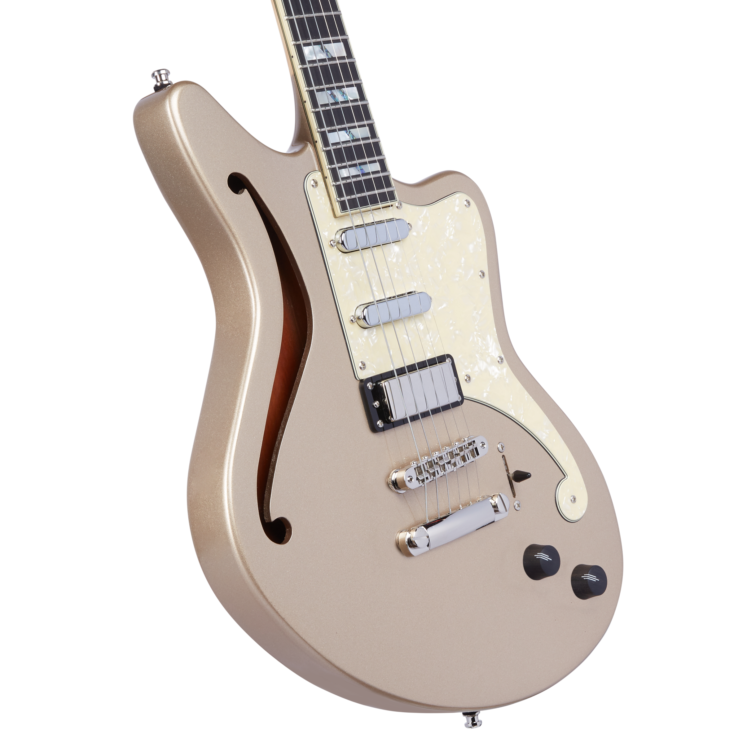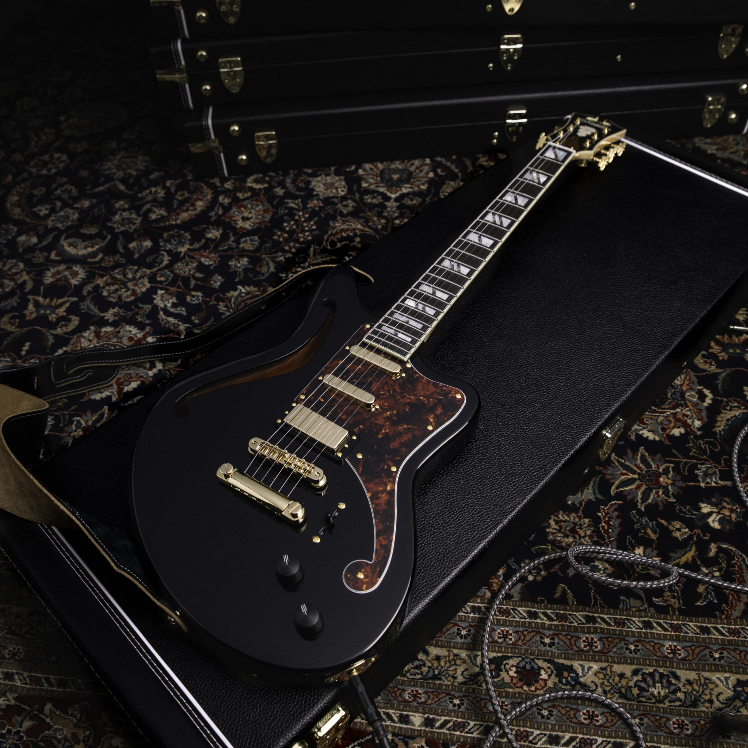 For an added edge of acoustic warmth to its three-pickup configuration, the Deluxe Bedford SH features a contoured F-hole over its oversized body chamber, perfectly blending the tonal worlds of solid-bodies and semi-hollows.