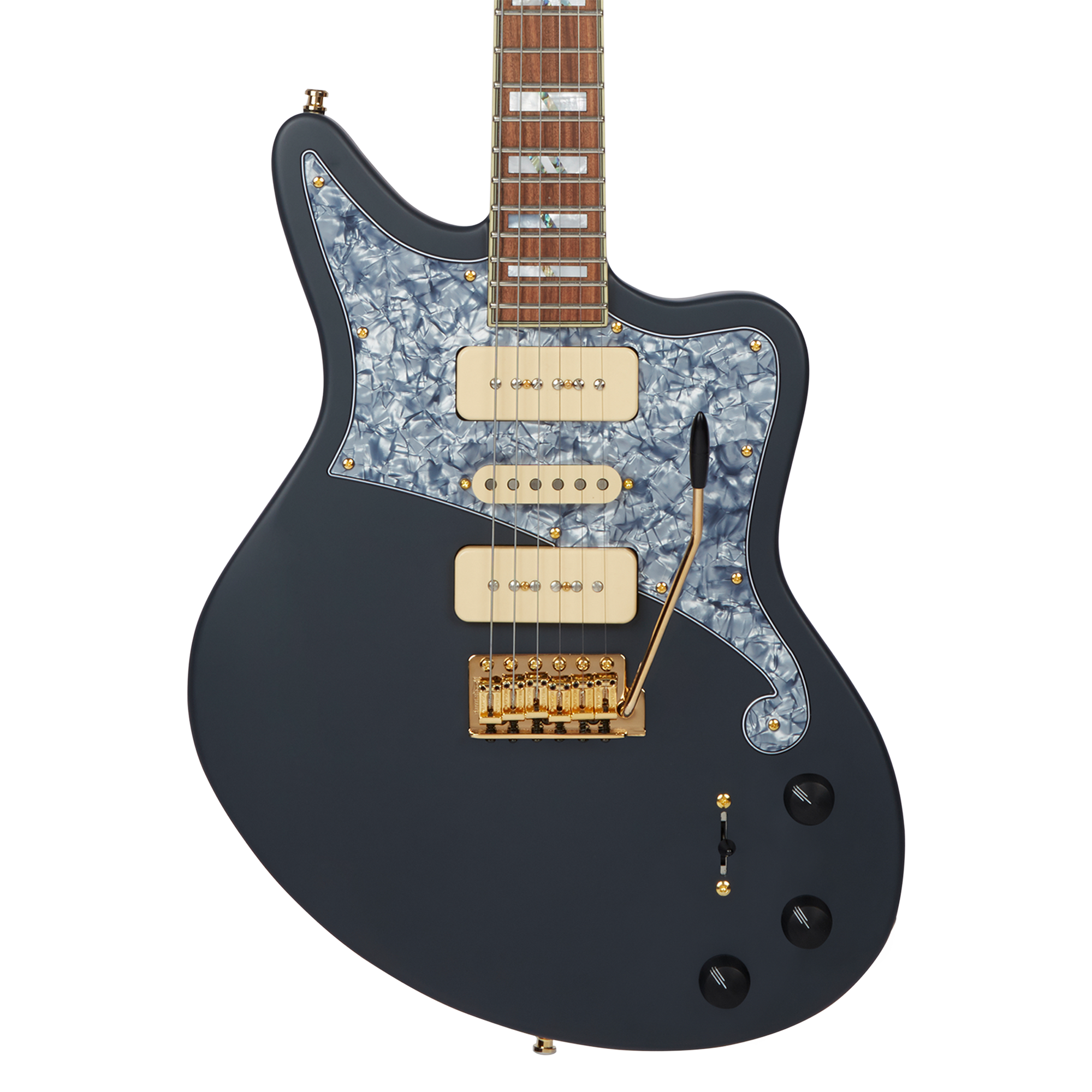 Two Stacked Seymour Duncan P-90s with a Lollar Blonde single-coil nestled in the middle paired with a standard five-way blade makes tone control easy. But an added blender pot allows players to mix in the “odd-man-out”, whichever pickup isn’t selected, guaranteeing maximum tonal versatility. Download Tone Map Diagram