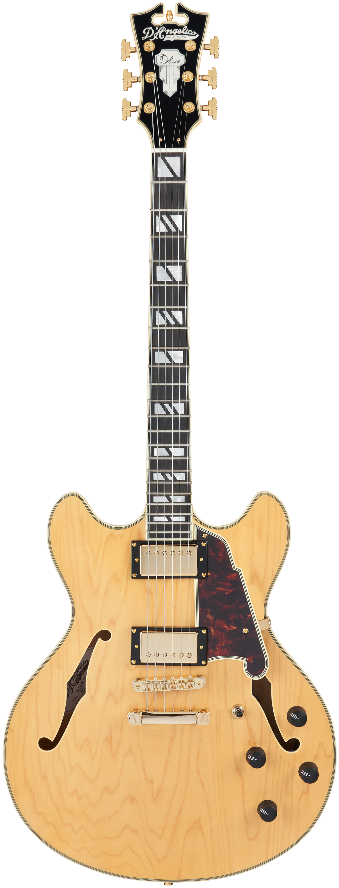 A 16-inch-wide semi-hollow with deep cutaways and a lightweight centerblock, the Deluxe DC offers remarkable sustain and exceptional genre versatility. Now featuring an ebony fingerboard.