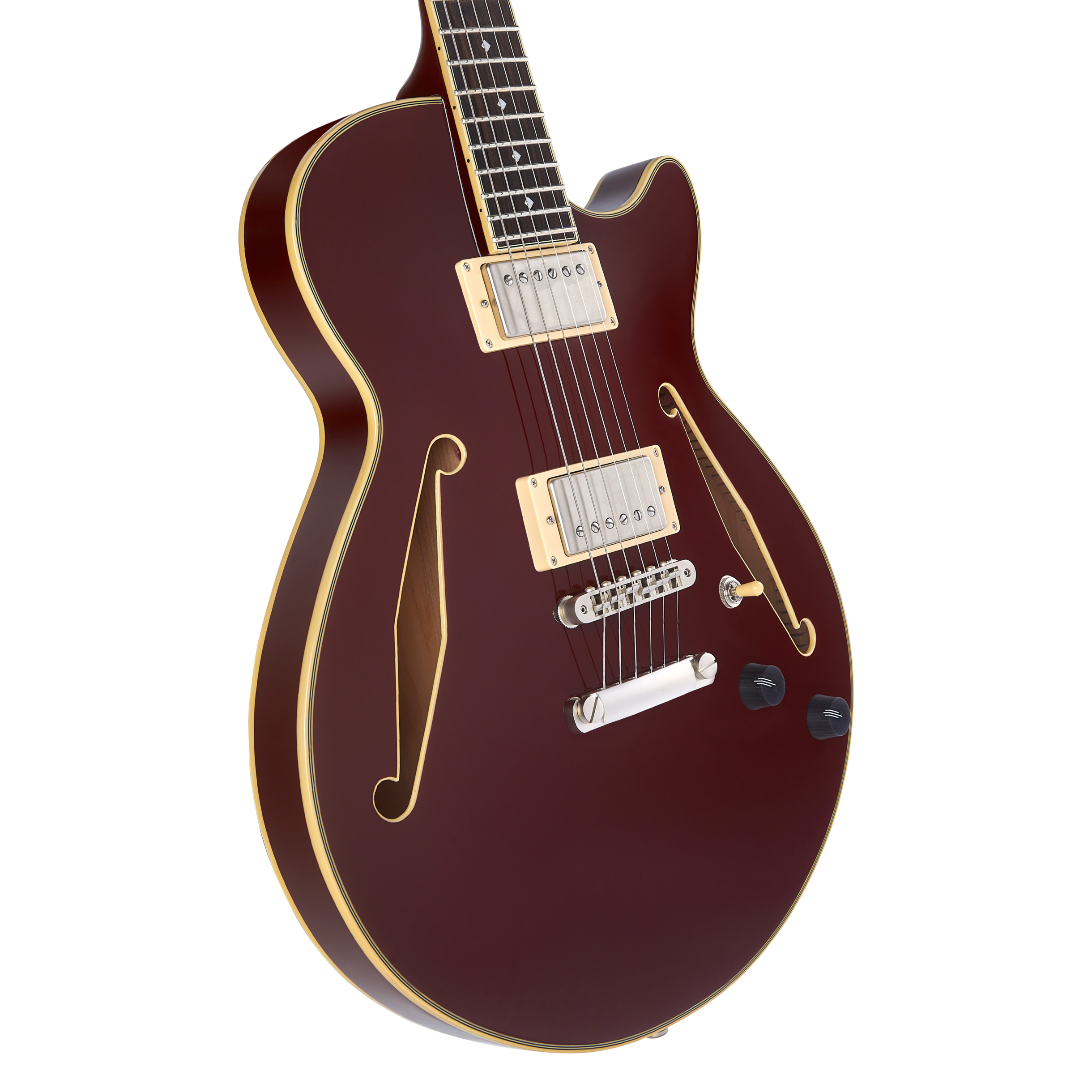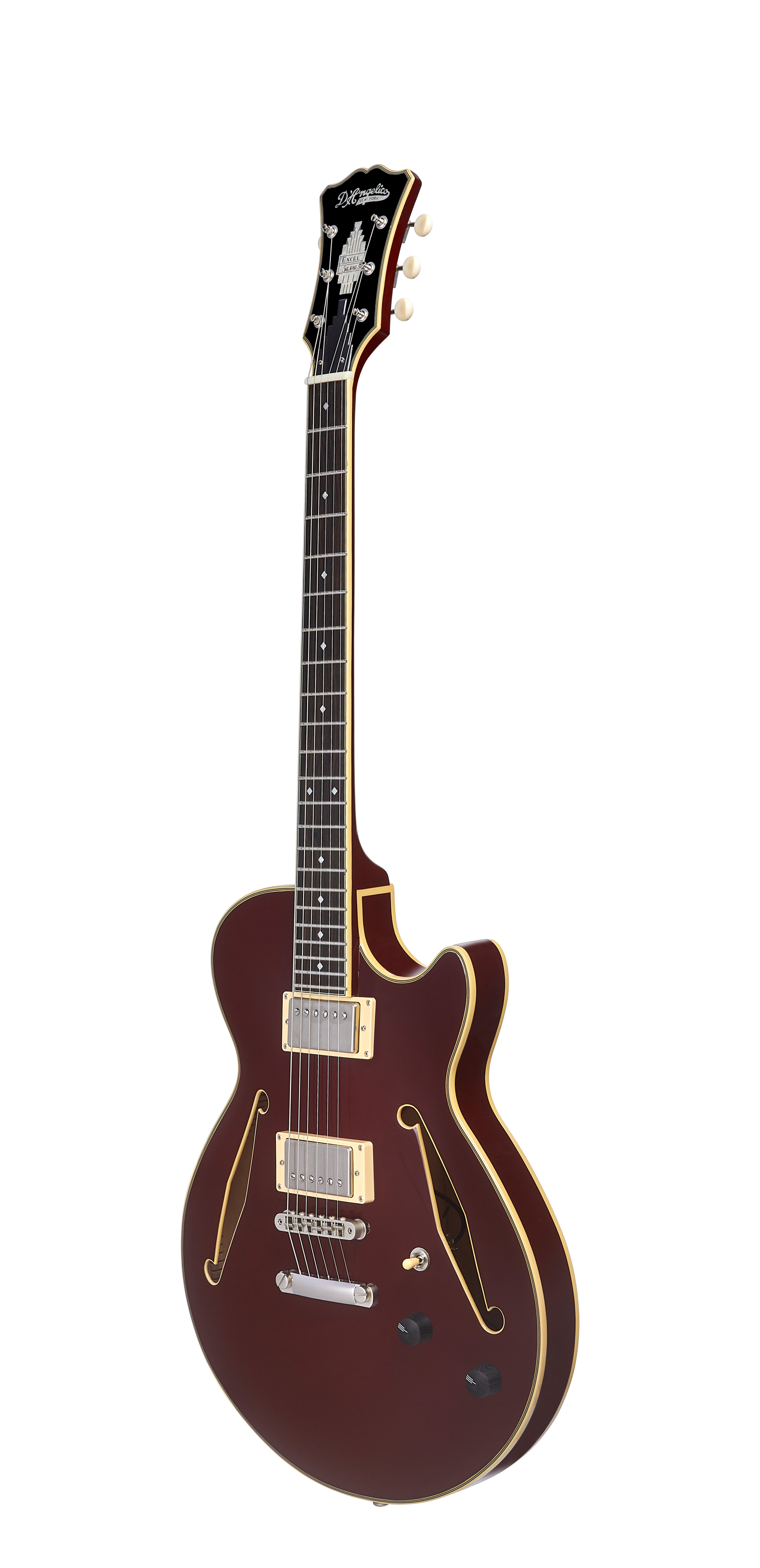 An elegant single-cutaway design with a goldilocks 15-inch body width, the SS Tour offers both woody warmth and vivid articulation. No pickguard and 1930s-inspired diamond f-holes bring old-school charm.